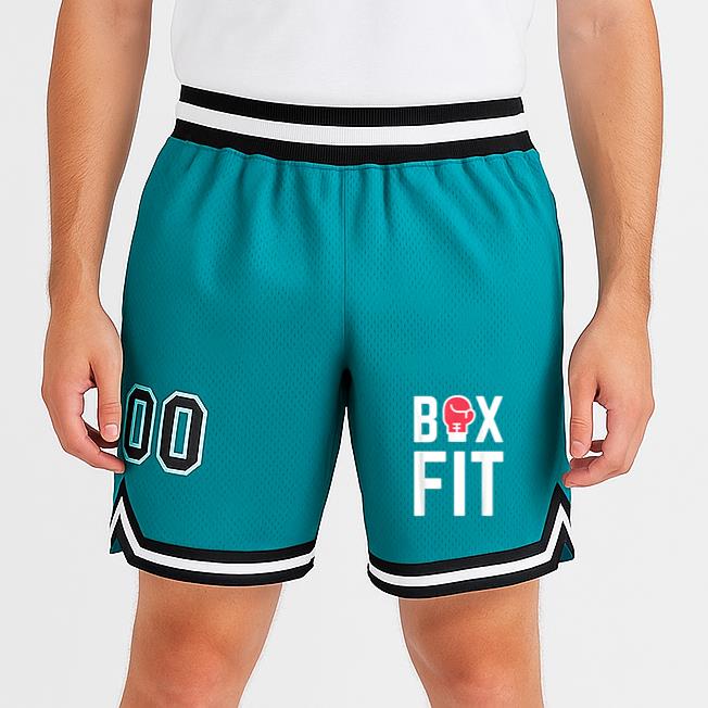 Boxing Club Punchbag Rhomb Colored Badge Sticker Basketball Shorts