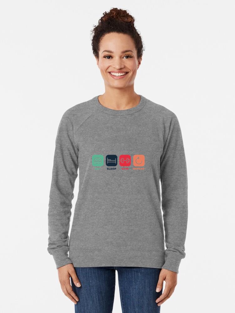 Stay cozy and casual with the Eat Sleep Gym Repeat Badge Sweatshirt sweatshirt. Crafted from soft heavy blend fabric it is perfect for layering or lounging any time of year