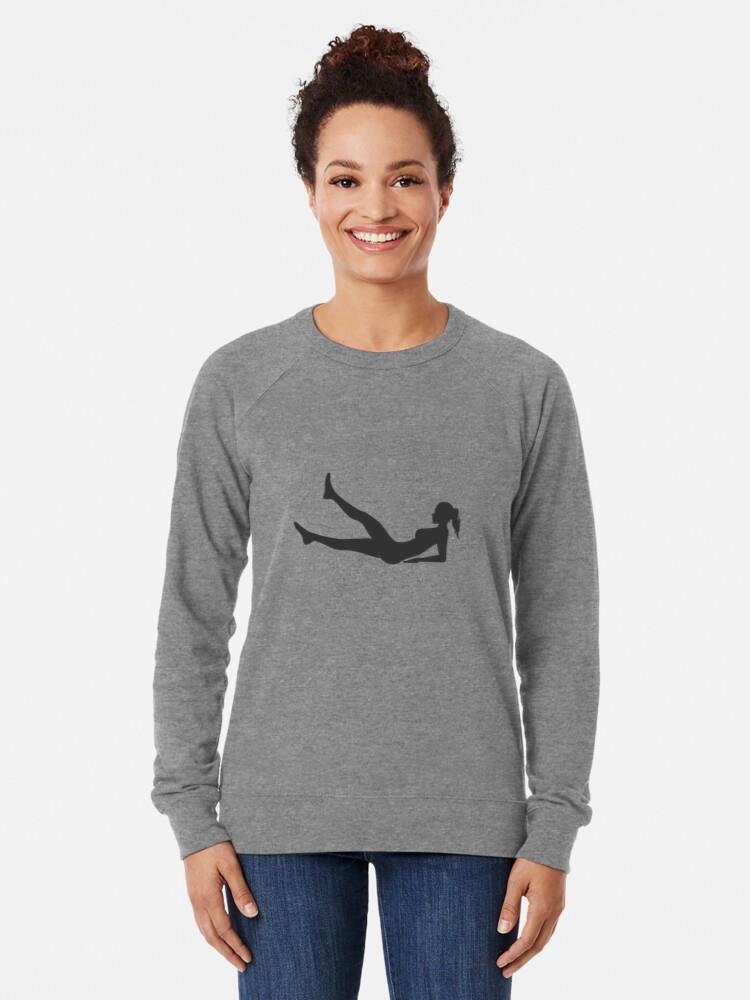 Stay cozy and casual with the Fitness Woman Silhouette Lifting Legs In Gray Sweatshirt sweatshirt. Crafted from soft heavy blend fabric it is perfect for layering or lounging any time of year