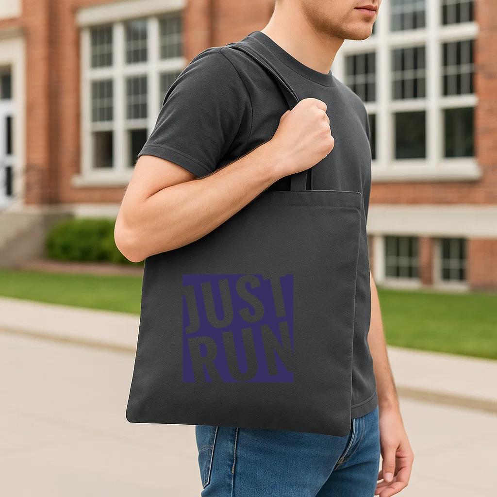 Chic, durable, and reusable, this Just Run Workout Lettering Tote Canvas Bag canvas tote bag is your daily go-to or a thoughtful gift for any occasion.