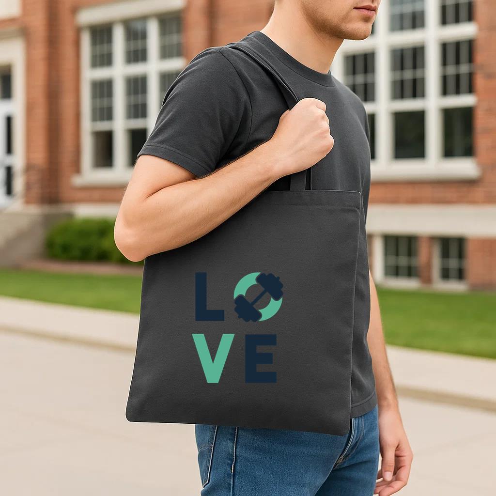 Chic, durable, and reusable, this Love Gym Badge Tote Canvas Bag canvas tote bag is your daily go-to or a thoughtful gift for any occasion.